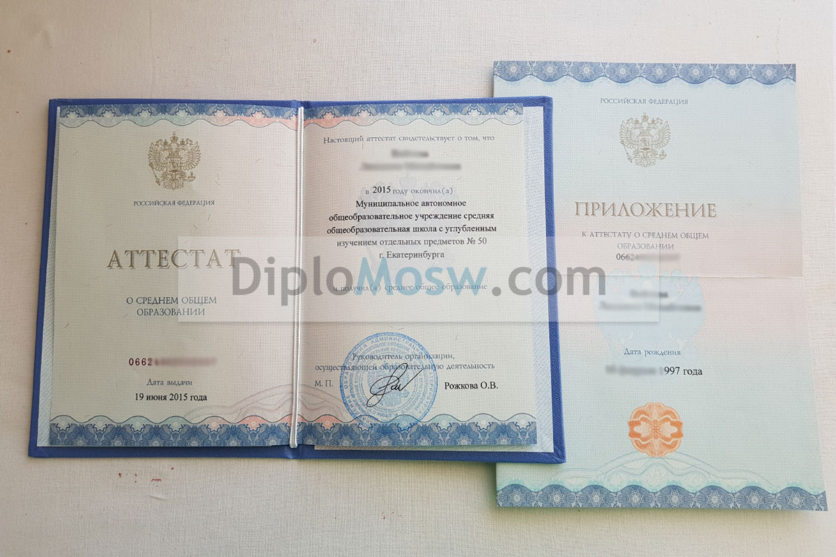Образцы аттестатов российских школ об окончании 11 классов или 9 классов. Мы делаем документы образовательных учреждений не только Москвы, но и других городов. Заполняем по всем стандартам.