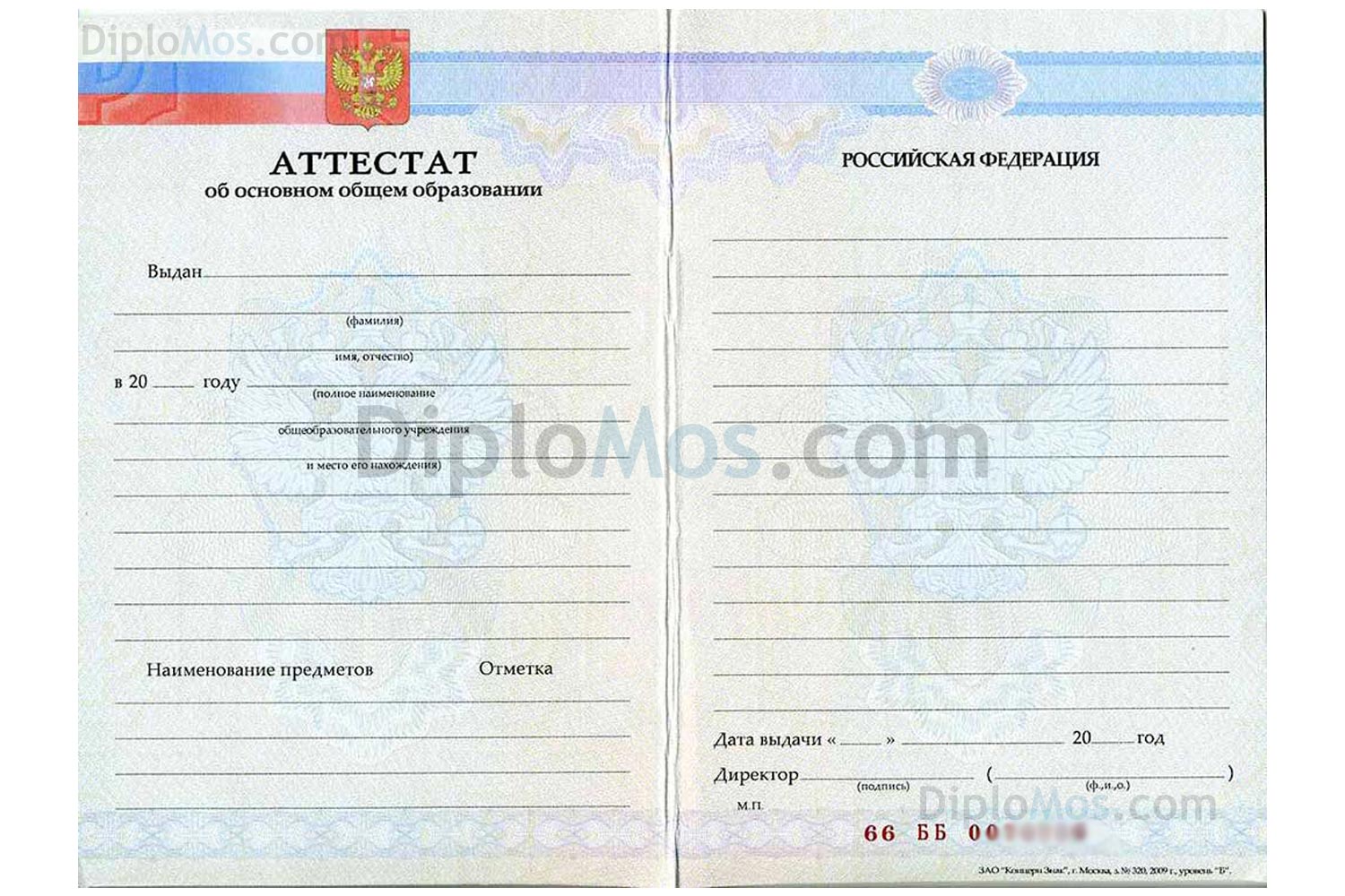 | Аттестат за 9 класс 2014-2020. Полный комплект, аттестат в наличии. Гознак |