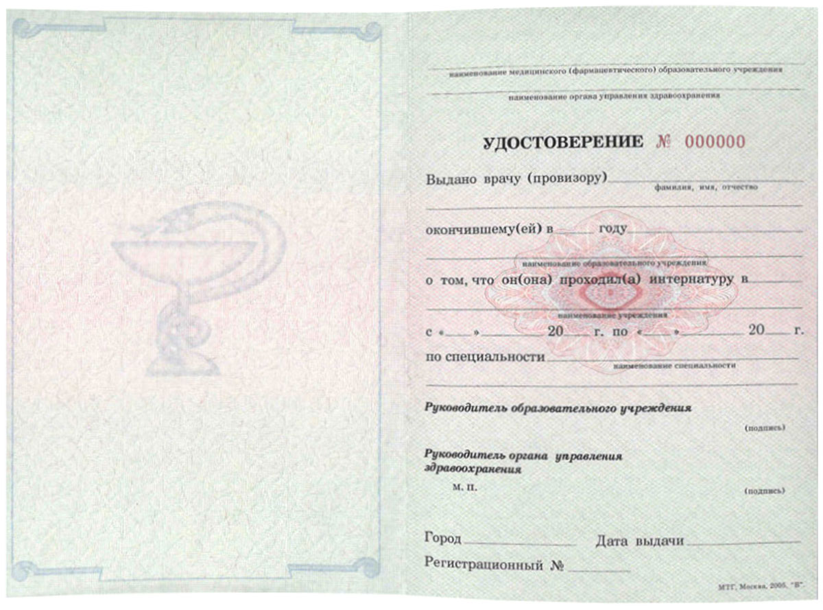 Удостоверение интернатуры